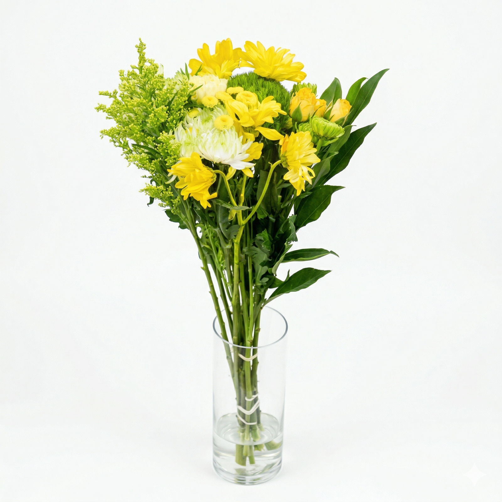 This arrangement captures the effortless beauty of a wildflower field, combining a spectrum of yellow tones with lush, structural greens. It’s a design that feels fresh, organic, and full of vitality.
